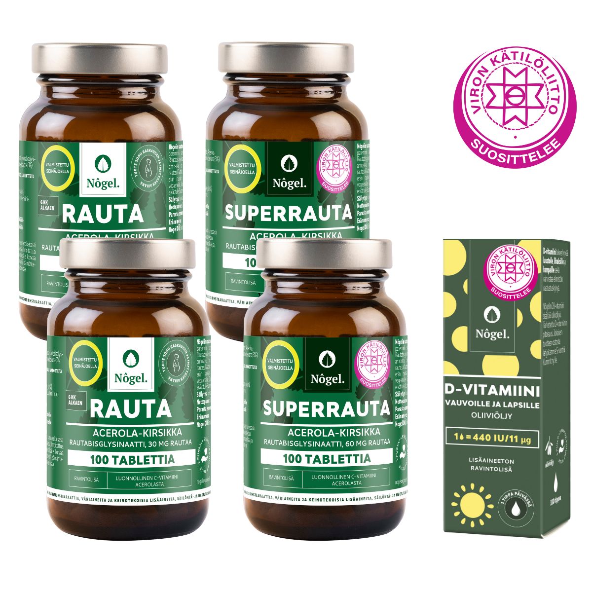 2 x RAUTA 30 MG, 2 X SUPERRAUTA 60 MG JA VAUVOJEN JA LASTEN D3-TIPAT 440 IU/11 μg
